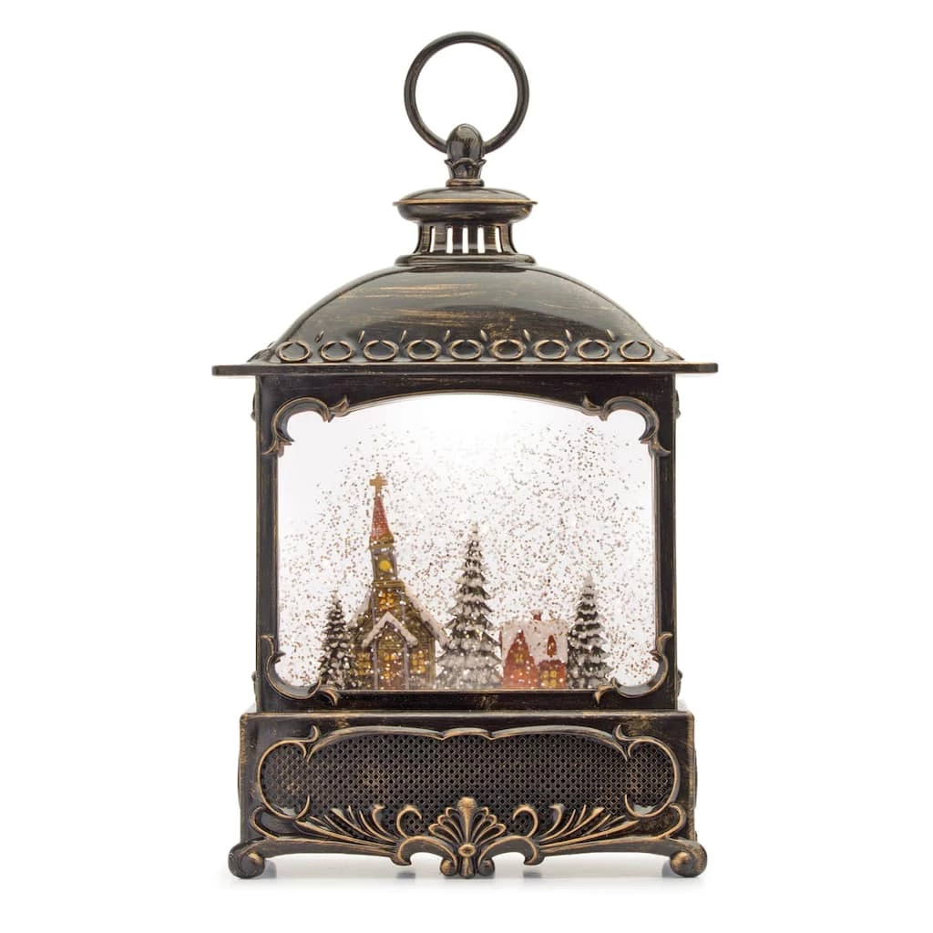 This snow globe is set into motion simply by turning it on. It features an iconic church and LED light.