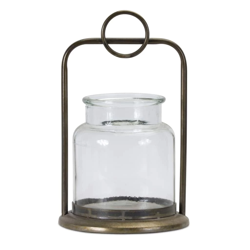 Modern meets casual in these beautiful candle holders. Each features aged bronze-look frames and bases with circle accents.Β