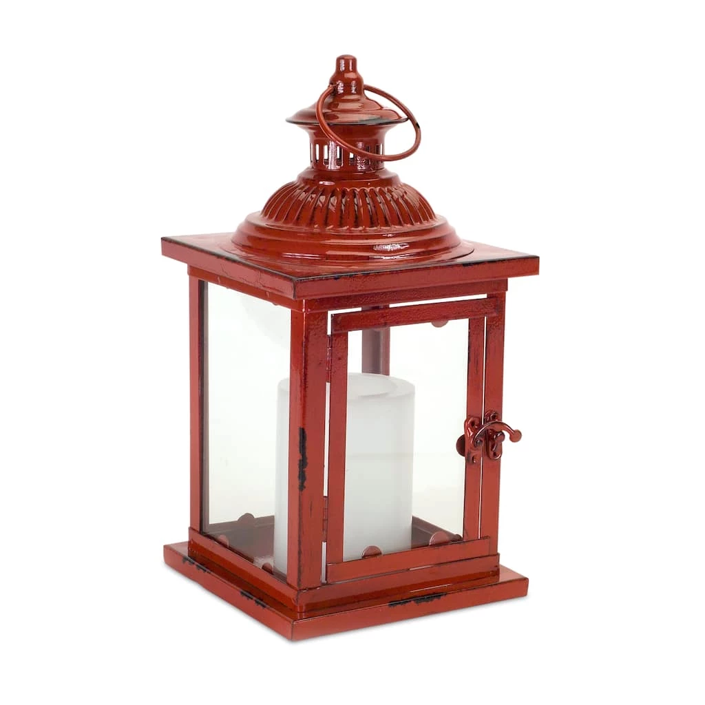 Add a pop of color to your home with this traditional lantern. Its rustic red finish paired with the classic design is the perfect combination to make a timeless piece. Its sturdy metal composition is sure to last for seasons to come. Great for both seasonal and every day home dΓ©cor, just add real wax or LED candles to illuminate the piece.