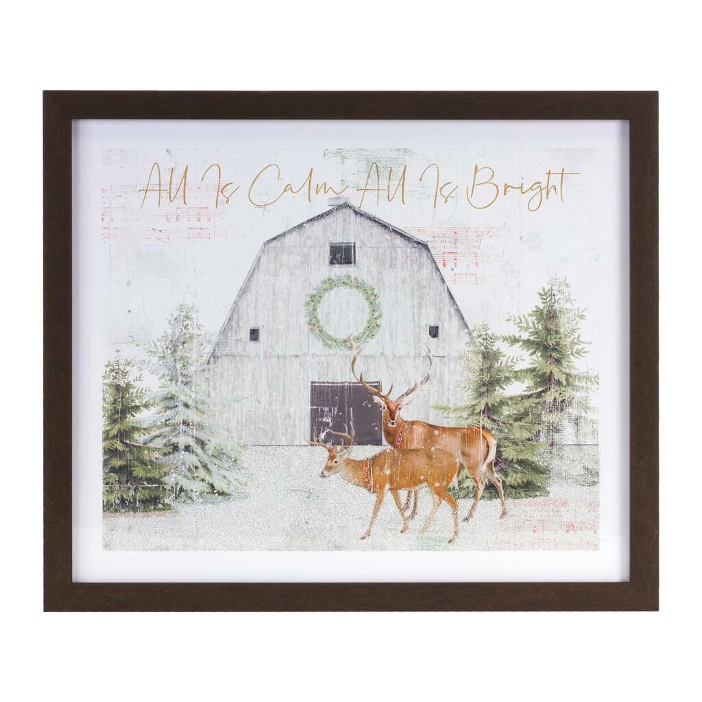 Adorn your walls with this stunning set of Framed Santa and Deer Barn Prints. Featuring two assorted designs, the delicate watercolor artwork paired with the classic black frame makes this set a great addition to any style of holiday dΓ©cor. The quality MDF and plastic composition is sure to last for seasons to come. Display the pieces together to make a statement, or display them alongside your other holiday dΓ©cor to add interest and character to the space.