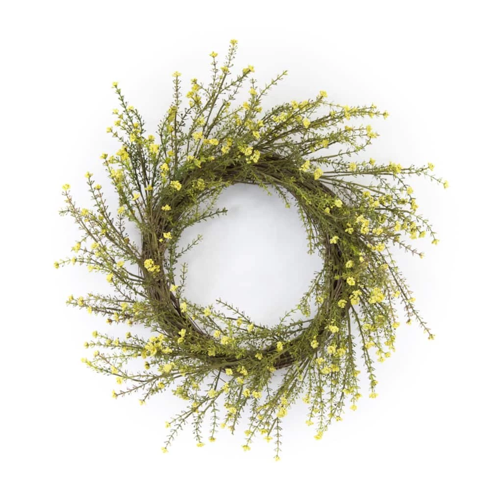 This simple hanging greenery will look beautiful accenting a front door, window frame, mantel, or displayed flat on a table for a unique centerpiece. Brighten up your home with simple beauty and add a touch of nature to your dΓ©cor with this wreath!