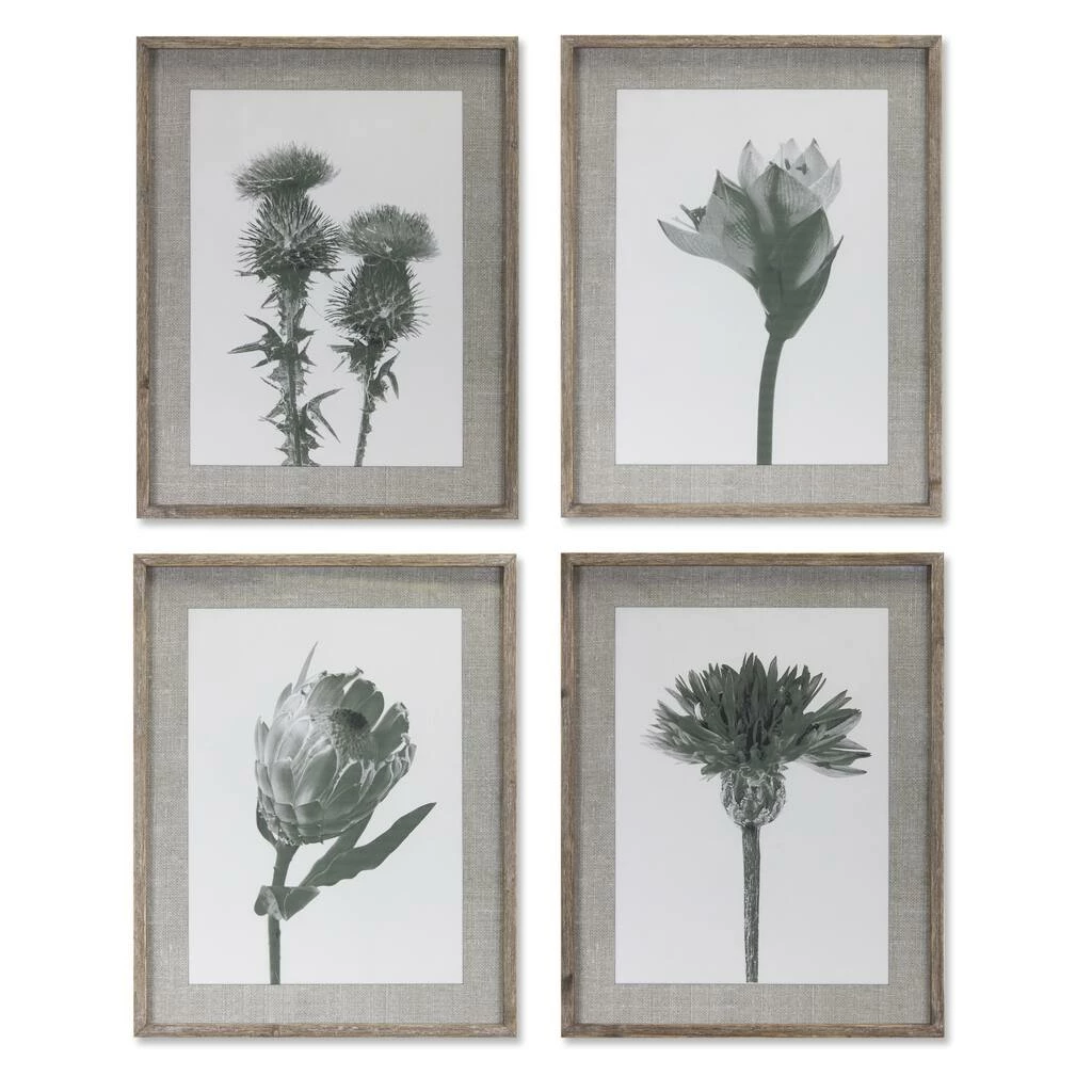 Linen-look matting and whitewashed framing gives these art prints added interest. These artistic floral prints have a duo-tone look in hues of gray and white.