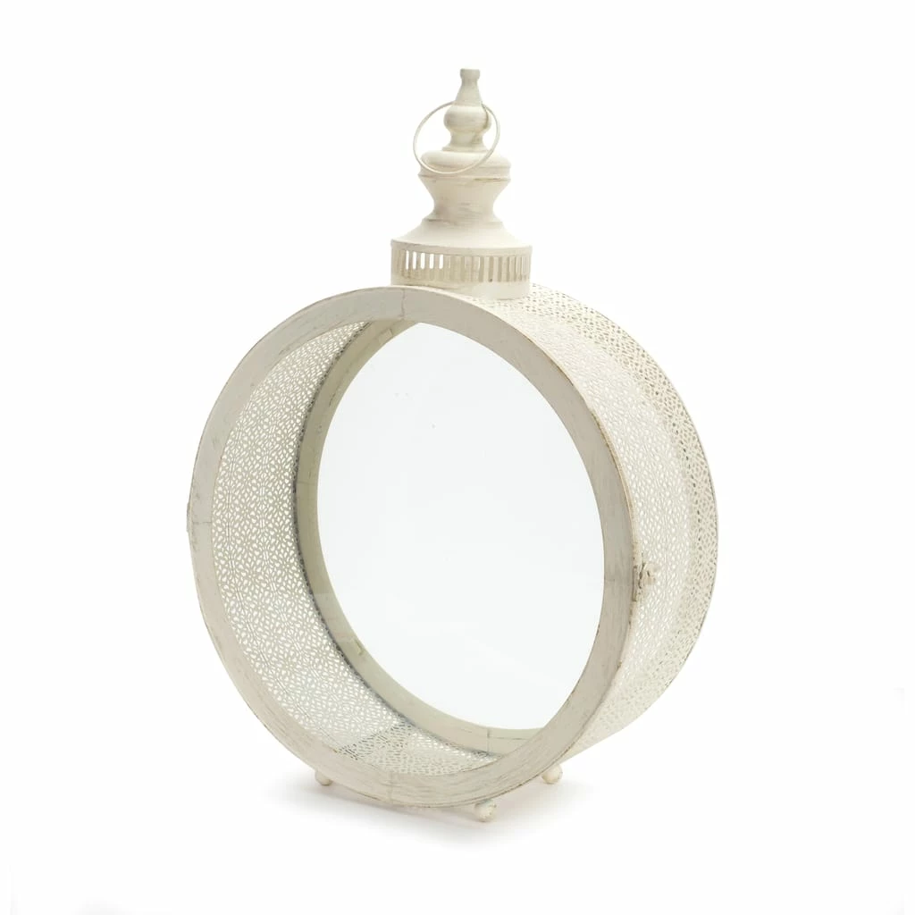 This ornate decorative lantern would look great as a table centerpiece, entryway accessory, or mantle decoration. The classic ivory finish is paired with a traditional yet modern design, the perfect combination to make a timeless piece. The sturdy metal construction is sure to last for seasons to come. It is great for both every day and seasonal dΓ©cor. Just add a real wax or LED candle to complete the look.