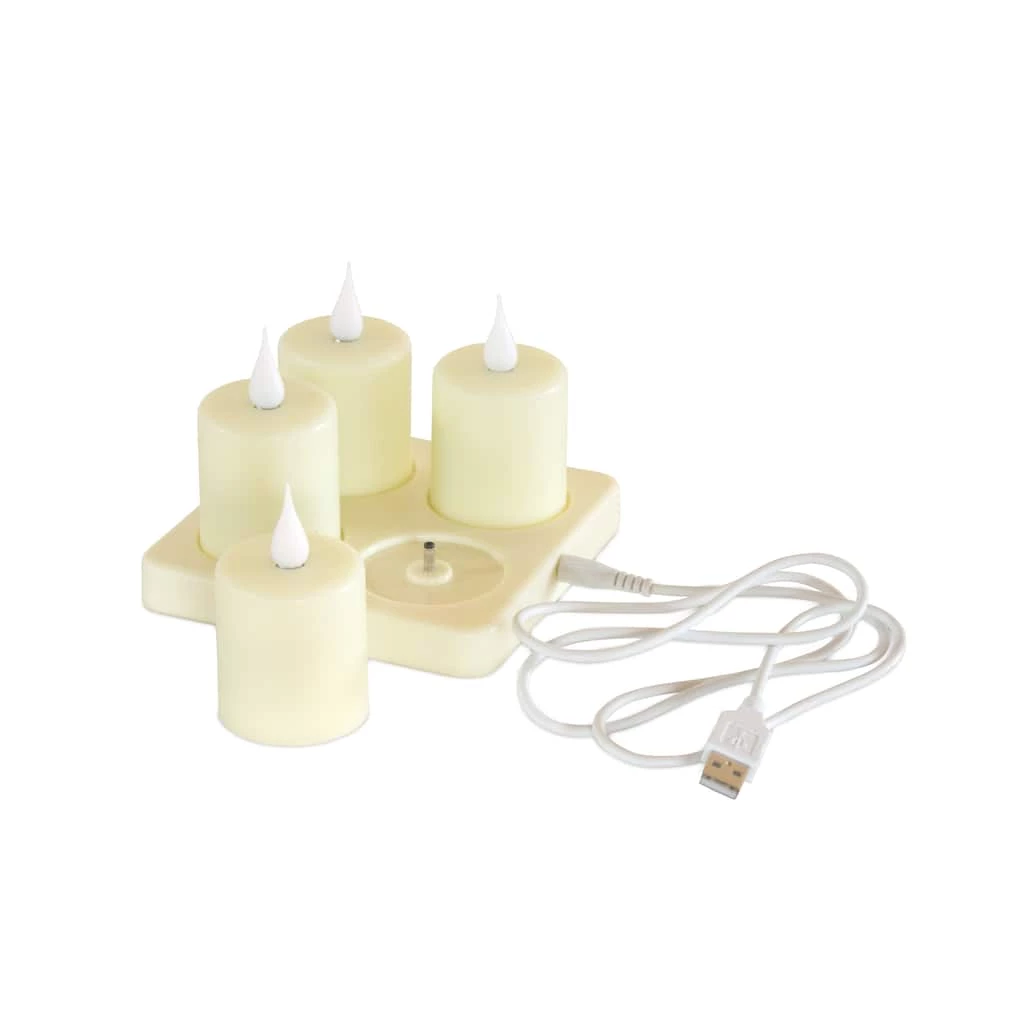 Add the beauty and ambiance of flickering candles to your home with this set of rechargeable LED candles. It has the appearance and texture of a real candle, but does not lend to the burnt smell and hazards involved with an open flame. These candles are waterproof, hold a 24-hour charge, and come with a remote.
