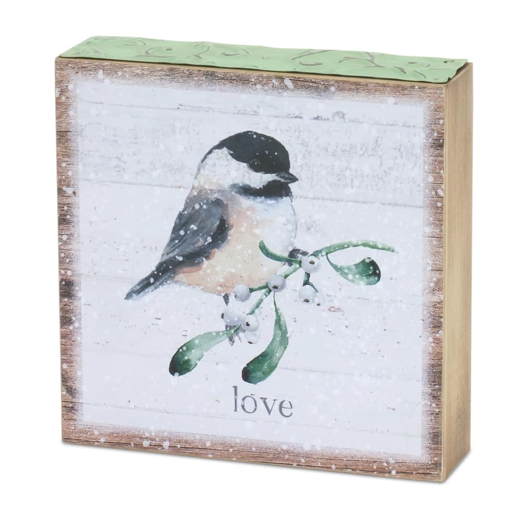 Ring in the holiday season with this beautiful set of Chickadee Block Table Signs. Featuring two assorted designs, the sentiments include “Love” and “Peace”. The faux wooden design paired with the delicate watercolor artwork and metal trim accent is the perfect combination to create a stunning Christmas display. The quality MDF and metal composition is sure to last for seasons to come. Display the pieces together to make a statement, or display them alongside your other holiday dΓ©cor to add character to the space.