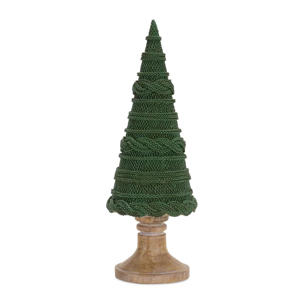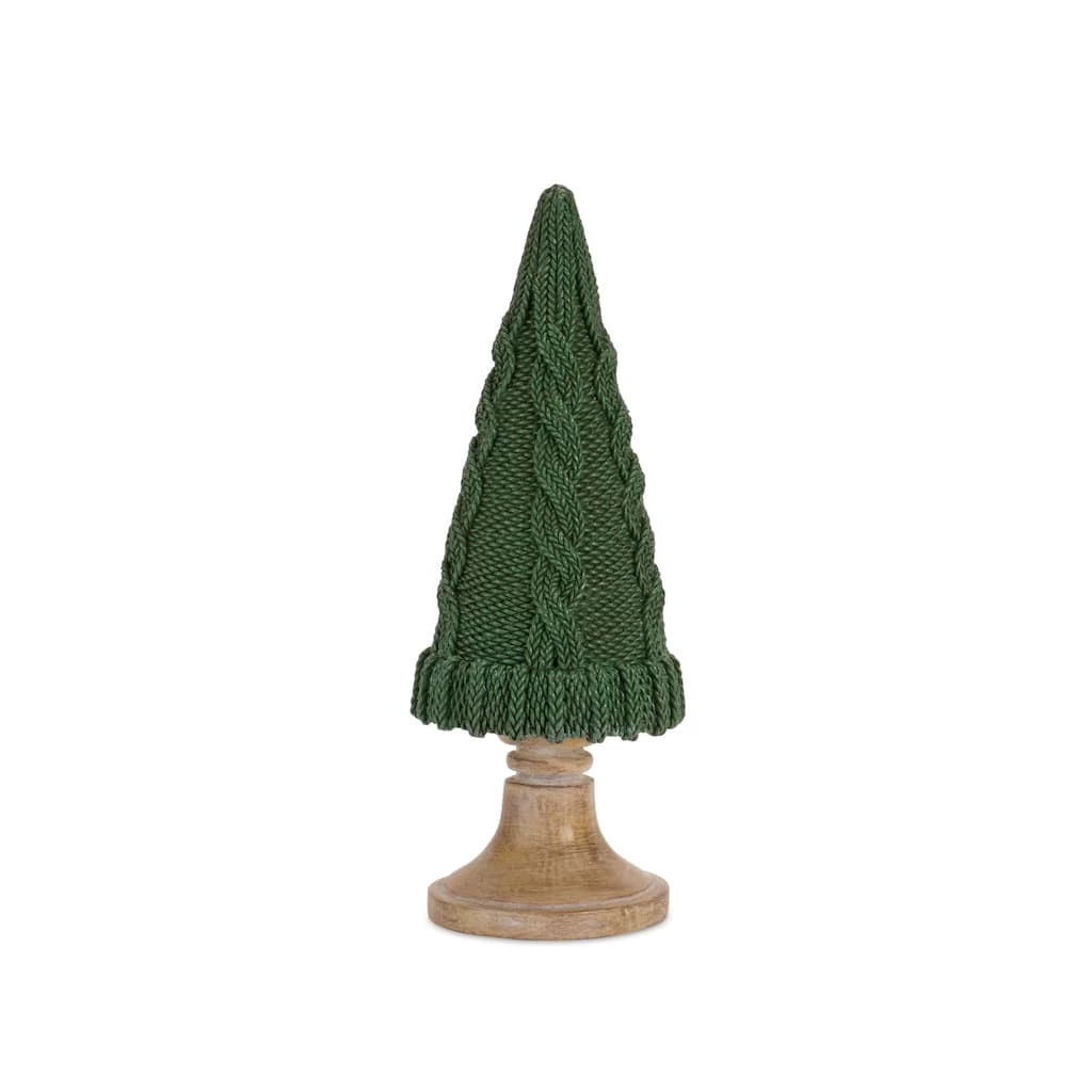 Enhance your holiday home dΓ©cor with this beautiful set of Woven Holiday Tree DΓ©cor. Featuring two assorted sizes, the faux woven sweater design paired with the natural brown tones makes this piece the perfect addition to your Christmas dΓ©cor. The quality polyresin composition is sure to last for seasons to come. Display the pieces in a table centerpiece or mantle arrangement to add interest.