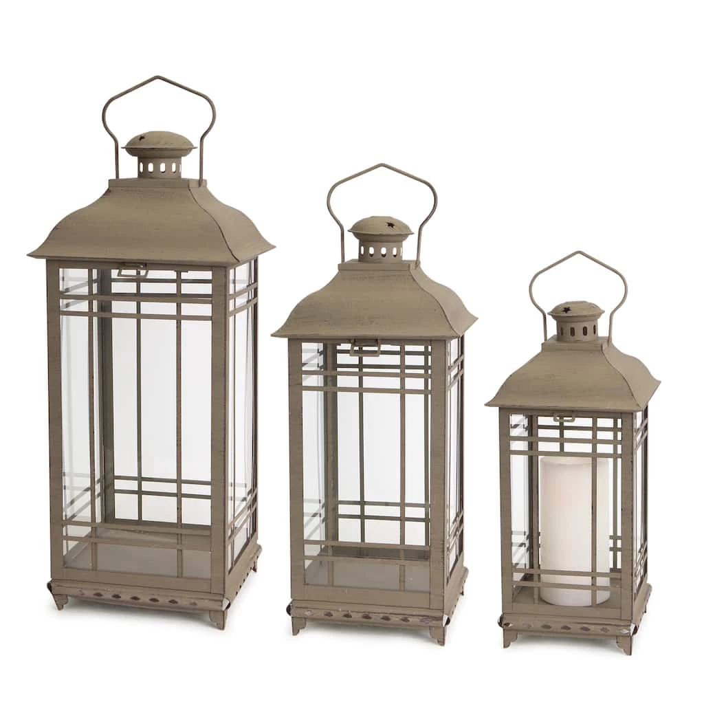 Welcome your guests with this beautiful set of decorative lanterns. Its traditional design paired with the rustic weathered finish is the perfect combination to make a stunning piece. The lanterns are a great addition to both every day and seasonal home dΓ©cor. The sturdy metal composition is sure to last for seasons to come. Just add real wax or LED candles to complete the look. It also makes a great canvas for DIY faux floral arrangements.