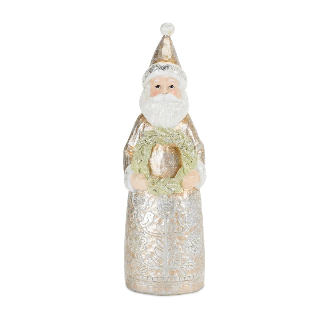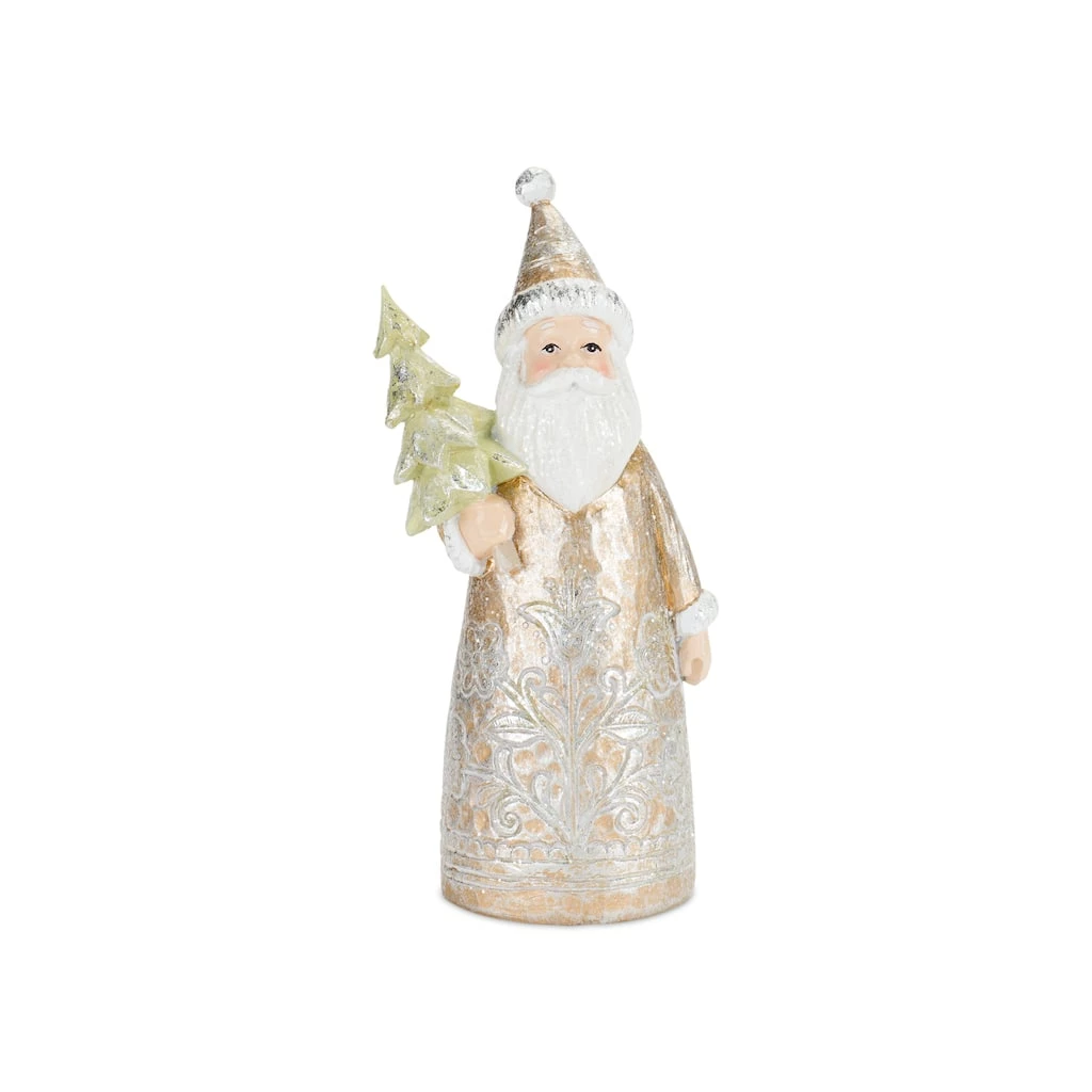 Add a whimsical touch to your holiday dΓ©cor with this beautiful set of Santa figurines. Featuring two assorted sizes, the realistic painted face paired with the tree and wreath accents is the perfect combination to create a stunning Christmas display. The quality polyresin composition is sure to last for seasons to come. Display the pieces together to make a statement, or display them alongside your other holiday dΓ©cor to add character to the space.