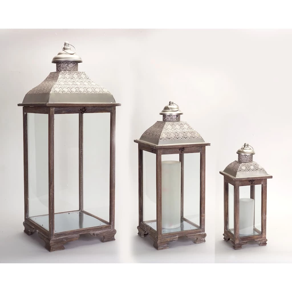 Enhance your home’s aesthetic with this contemporary set of decorative lanterns. These lanterns boast a modern design paired with a rustic wood finish, the perfect combination to make a stunning piece. They are great additions to your every day or seasonal home dΓ©cor. Just add real wax or LED candles to illuminate the pieces.