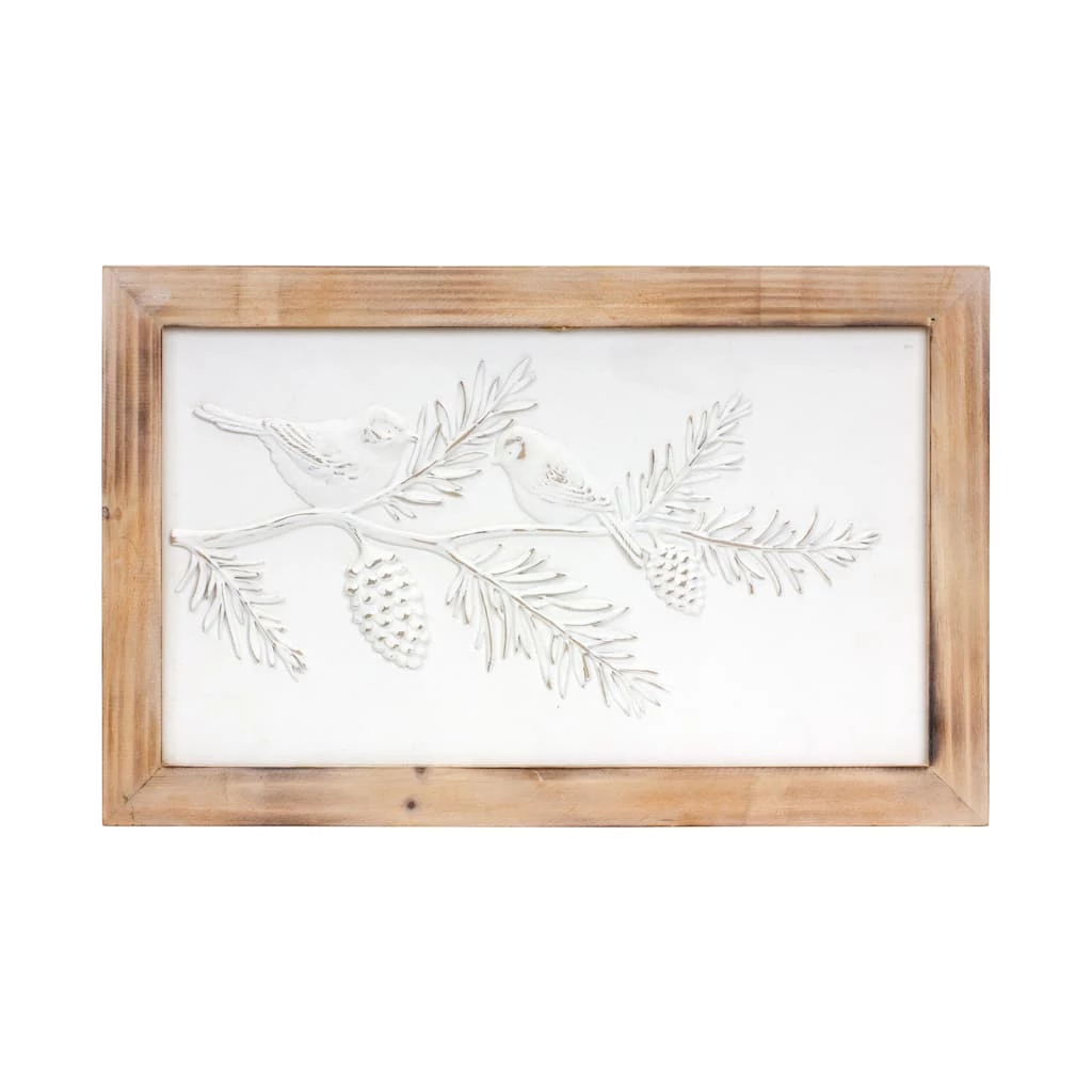 Add a modern touch of nature to your holiday home dΓ©cor with this beautiful set of Pine Branch and Bird Wall DΓ©cor. Featuring two assorted designs, the white-washed finish paired with the natural wooden frame is the perfect combination to create a stunning Christmas display. The quality polyresin and wood composition is sure to last for seasons to come. Display the pieces together to make a statement, or display them alongside your other holiday dΓ©cor to add interest to the space.