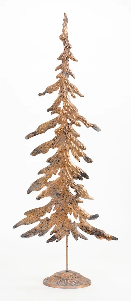 Enhance your holiday home dΓ©cor with this beautiful set of rustic metal trees. Featuring three sizes, the modern cutout design paired with the rustic copper finish makes this piece the perfect addition to your Christmas dΓ©cor. Display these pieces in a table centerpiece or mantel arrangement to add interest.