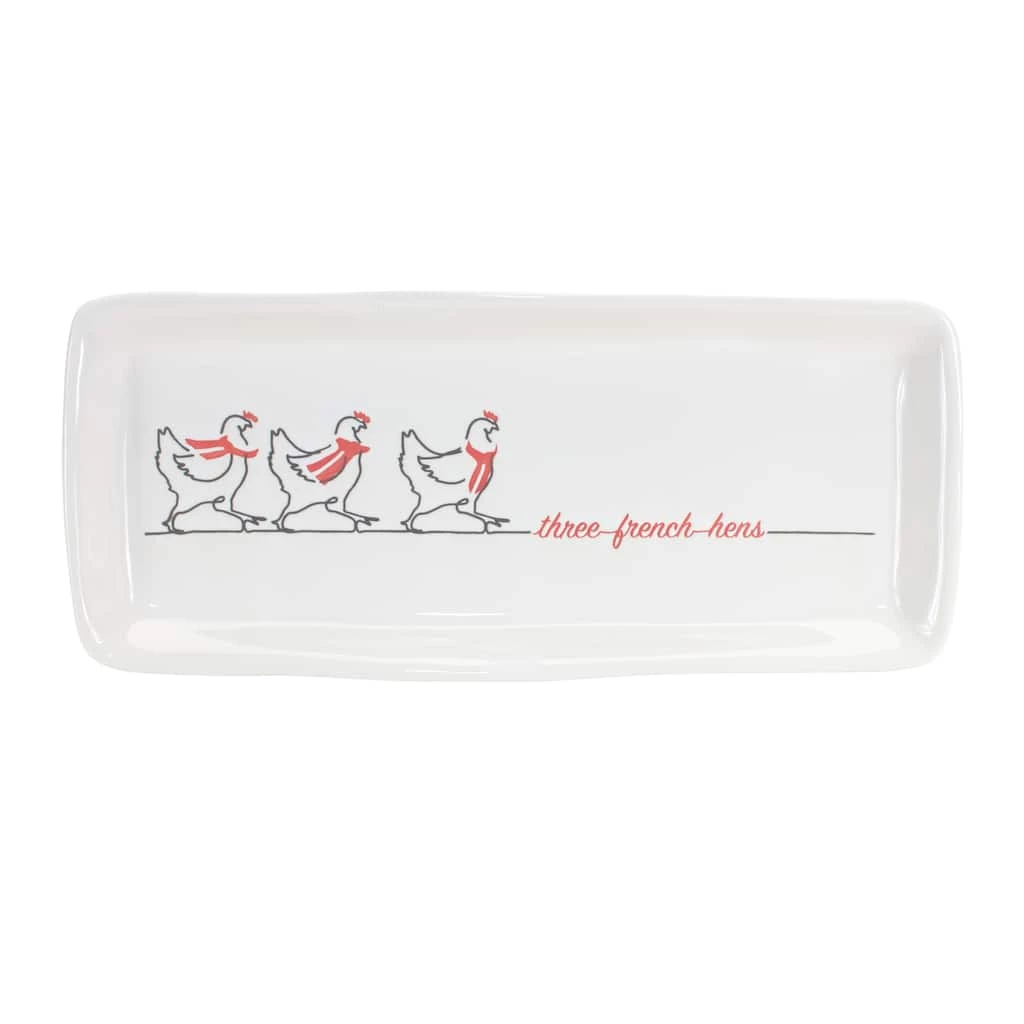 Serve your guests in style this holiday season with this stunning set of Three French Hens Platters. Featuring two pieces, the platter includes the sentiment “Three French Hens”. The classic red and white color scheme paired with the modern line artwork is the perfect combination to create a stunning Christmas display. The quality earthenware composition is sure to last for seasons to come.
